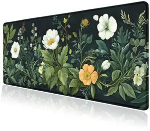 Vintage Wildflowers Flower Floral Large Mouse Pad, Desk Mat Computer Keyboard Pad Non-Slip Rubber Base Waterproof with Stitched Edges for Laptop Gaming, Office & Home 31.5 x 11.8 Inch