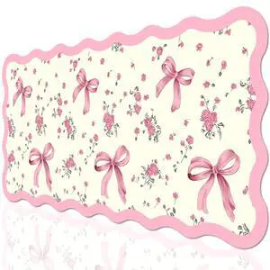 VibrantFruitique Pink Floral Bow Desk Mat, 31.5"x15.75" Large Mouse Pad, Anti-Slip Leather Computer Desk Pad for Keyboard and Mouse, Desktop Cover Protector Office Accessories Decor for Women