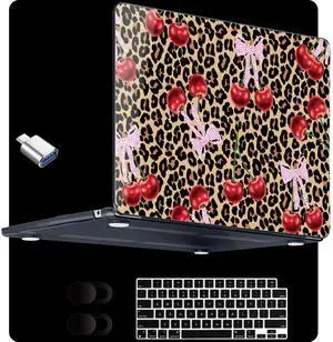 MEEgoodo for M5/M4/M3/M2 MacBook Air 13.6 inch Case 2026 2025 2024 2022(Fit Model A3449 A3240/A3113/A2681), Clear Laptop Shell Cases for MacBook Air 13-inch, Leopard Skin & Cherry