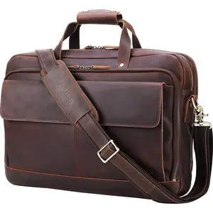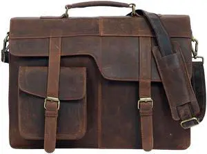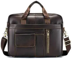 Premium Handmade Genuine Leather Briefcase 16 inch Laptop Compartment Adjustable Shoulder Strap Luggage Strap Briefcase Satchel Messenger Bag Leather Shoulder Bag
