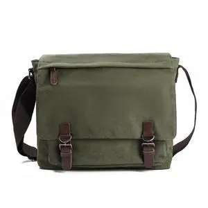 Evergoo Vintage Canvas Messenger Bag Unisex Shoulder Bags Canvas Satchel Cross Body College Working Satchel Briefcase for 15.6 Inch Laptop-Olive