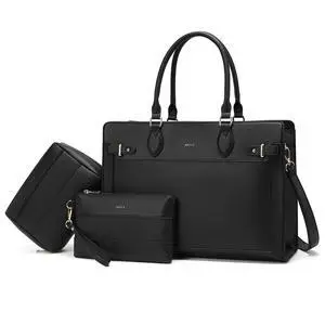 Keyli 3pc Sets Laptop Tote Bag for Women 15.6 Inch Work Bag Business Computer Briefcase Waterproof Leather Laptop Purses Casual Shoulder Handbag Messenger Bags for Travel Teacher Office Black