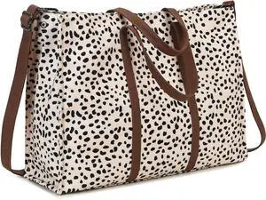 Laptop Tote Bag for Women Work Shoulder Bags 15.6 inch Canvas Laptop Computer Purse Messenger Teacher Handbag Business Office Briefcase (Leopard - Apricot)