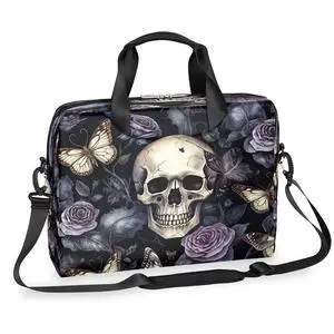 Laptop Case Floral Halloween Skull Laptops Sleeve Shoulder Messenger Bag Briefcase Notebook Computer Tablet Bags with Strap Handle for Women Man Boys Girls 16 Inch