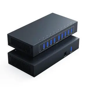 Yinker 10 Port USB 3.0 Hub, Industrial Powered USB Data Hub with 12V/3A Adapter 105W Output ESD Protection, Rugged Metal Case Mountable USB Expander Splitter