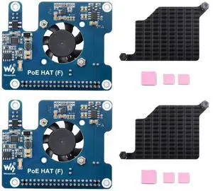 2PCS Waveshare PoE HAT (F) Compatible with Raspberry Pi 5, High Power, Onboard Cooling Fan, with Metal Heatsink, Supports 802.3af/at Network Standard