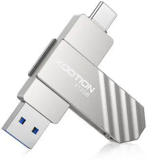 KOOTION USB 3.2 Flash Drive 512GB, Up to 450 MB/S Read Speed USB C Memory Stick, Dual USB C Thumb Drive with USB Type-C and USB A, Swivel Metal Pen Drive for Smartphones/Tablet/Laptop/Mac/Car/TV