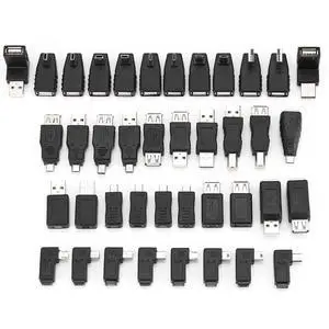 40 Pack USB Adapter Kit, Angled Micro Mini USB Type B Converter Set for Cable Management and Device Connectivity Solutions