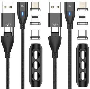 geniquark 60W USB C Magnetic Charging Cable, 3 in 1 Charger Cable for Type C(2 Pack) 480Mbps Data Transfer, 3A Fast Charging for Phone 17 16 15,14,13 Pro Max, MacBook Pro,Pad,Galaxy S22,Pixel