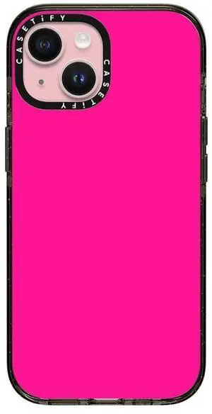 CASETiFY Impact iPhone 15 Case [4X Military Grade Drop Tested / 8.2ft Drop Protection/Compatible with Magsafe] Simple Neon Pink - Clear Black