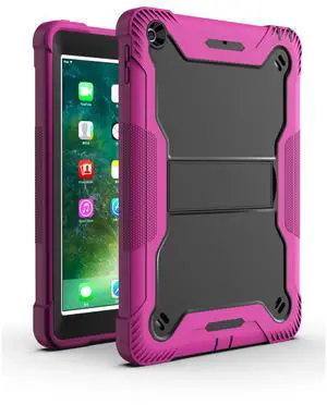 YOUULAR Tablet Computer Case for Apple iPad 9.7 (2018/2017) 6th/5th Generation 9.7 inch Cover with Built-in Stand for Heavy Duty Military Grade Shockproof Hard Hybrid,Black+Rose red