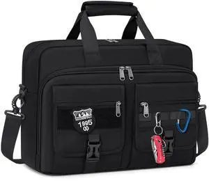 RAINSMORE Tactical Laptop Bag 17.3 Inch Laptop Briefcase Men Business Computer Bag Large Laptop Case Waterproof Military Shoulder Messenger Bag Work Office Travel, Black