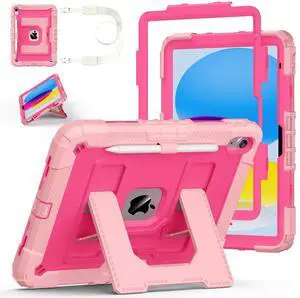 Case for iPad A16 11th/10th Generation 11/10.9 Inch 2025/2022, Auorld for ipad a16 case 11 in 2025 Military Grade Shockproof Cases with Kickstand Pencil Holder Shoulder Strap, Pink Rose