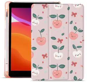 MAYCARI White Pink Apples Fashion Case for iPad 10.9 inch 2022 with Pencil Holder, Original Pattern iPad 10th Generation Soft TPU Back Protective Cover Shell, Auto Sleep/Wake Slim Shell - Pink