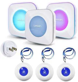 Wireless Caregiver Call Button, Rechargeable Caregiver Pager for Elderly, Call Bell for Elderly at Home,Medical Life Alert Systems for Seniors with Portable Receiver / Emergency Button with Pull Rope
