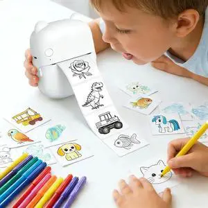Rechargeable AI Smart Conversation Thermal Printer, Portable Voice-Controlled with Upgradeable Mobile App, AI Q&A/Photo Generation/Study Aids/Alarm & Location, 2 Rolls Adhesive Stickers (Great Gift)