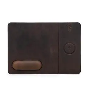Hiram Premium Crazy Horse Leather Mouse Pad with 15W Wireless Charging - Ergonomic Wrist Rest, Waterproof, and High-End Cowhide Touch(12in x 9in)