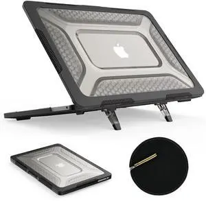 SEYMAC stock Case for MacBook Air 13.6 inch, Shock-Absorbing Protection with Folding Stand &Mouse Pad Case for MacBook Air 13.6 inch, Black