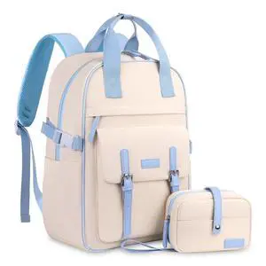 MOSISO Laptop Backpack for Women Men, 15.6 inch Computer Backpack Travel Backpacks, Airline Approved Carry On Luggage, Lightweight Personal Item Bag for Commute Weekender College Business, Beige&Blue