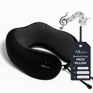 ARniwer Bluetooth Music Semicircular Neck Pillow Wireless Bluetooth Speaker Suitable Airplane,Bus,Train,Car,Office,and Outdoor Camping for Sleeping, Resting The Best Travel Essentials. (Black)