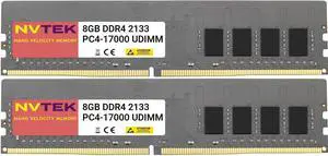 NVTEK 16GB (2X8GB) DDR4 2133MHZ PC4-17000 UDIMM 1Rx8 1.2V 288-PIN Non-ECC Unbuffered Desktop PC Computer Memory KIT