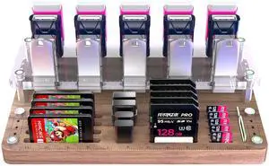 FEIFANZHE 40 Slots Wooden Memory Card Case for TF/CF/Nintendo Switch, USB Flash Drive/SD Card Holder Desk With Removal Pin - Protection Box-03MY