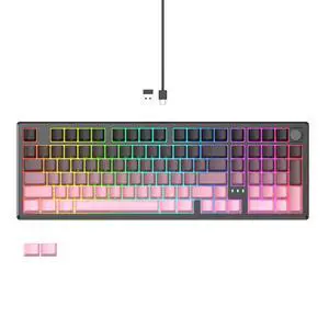 LUMI101 Wireless Mechanical Keyboard,Full-size keyboard with numeric keypadTri-Mode BT5.0/2.4GHz/USB-C Hot Swappable Custom Keyboard,RGB Backlit Computer Gaming Keyboards for PC/Tablet/PS/Xbox(Pink)