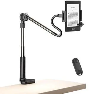 Foldable Tablet Holder for Kindle Reading in Bed with Remote Page Turner, No Stiff Easy Adjust Flexible Tablet Arm Desk Holder, Ereader Accessories for Kindle Paperwhite/Scribe/Oasis, iPad, Phone