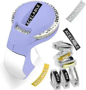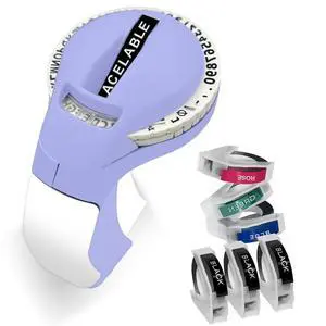 ACETONER Embossing Label Maker Machine with Tapes, Portable Retro Embossed Label Maker Writer, Mini Embosser Label Maker with 5 Black Rolls Embossing Label Tapes (Purple)