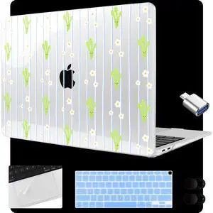 MEEgoodo for MacBook Air 13.3 inch Case 2021 2020 2019 2018 A2337 M1 A2179 A1932, Laptop Shell for MacBook Air M1 with Keyboard Webcam Cover & Trackpad Film & Type C Adapter,Cute & Cheerful Asparagus