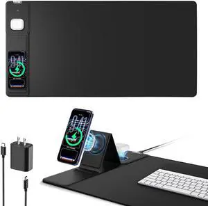 Mouse Pad with Magnetic Wireless Charging & Adjustable Phone Stand, 31.5"x15.8" Extended Desk Mat, Waterproof Ultra-Smooth Keyboard Pad, Non-Slip Base, with 20W PD Adapter, Black