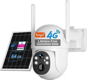 SANSCO 4G LTE Cellular Solar Security Camera, Lifetime Free Unlimited Data, No Monthly Fee, No WiFi Wireless Outdoor Cam, 2K Color Night Vision, 360 PTZ, 2-Way Audio, Built-in SIM, 64G TF Card, TUYA