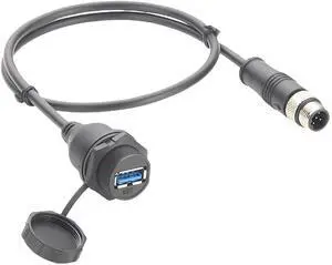 IP67 Industrial USB 3.0 Connection Cable USB A Female Socket to M12 5Pin B Code Male Flush Panel Mount Bulkhead Cable Compatible with IFM EC2099 for PDM360 NG Module,HMI,Control Panel (0.5M/1.64FT)