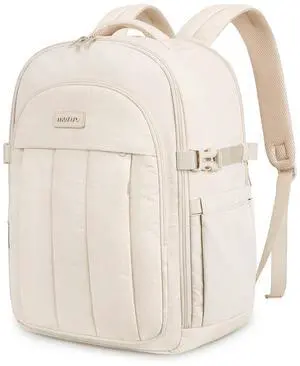 MOSISO 30L Travel Backpack for Women, Airline Approved Carry on Backpack with Shoe Compartment, Puffy Lightweight 15.6 inch Laptop Bag with 3 Front Pockets, Personal Item Travel Bag, Sand