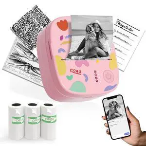 XenGro Mini Sticker Printer AHM2, Mini Thermal Printer with 3 Rolls Paper, Bluetooth Inkless Printpods, Pocket Label Maker Suitable for Creative Kids DIY, Diaries, Photos, Study Notes -Light Pink