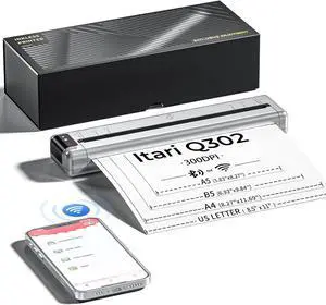 Itari Q302 WiFi Portable Printers Wireless for Travel, Mini Thermal Printer with Reverse Charging, Upgraded 300DPI Inkless Phone Printer Supports US Letter/A4/B5/A5, Small Mobile Printer for Vehicles