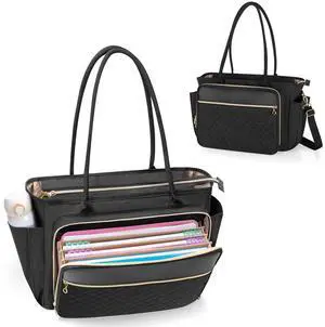 LUXJA Teacher Tote Bag with Accordion File Pocket, Teacher Bag for Women with 15.6 Inch Laptop Compartment, Black