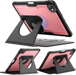 Miimall Leather Case for iPad Pro 11 Inch 2025/2024(M5/M4) with Pencil Holder, [Magnetic Back Cover] [Multi-Angle Landscape&Portrait Viewing] [Rotating Magnetic Stand] Non-Slip Folio Cover, Blackpink
