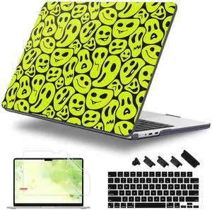 Lepeoac Case for MacBook Air 15 Inch 2025 2024 2023 Release M4 A3241 M3 A3114 M2 A2941, Hard Shell with Screen Protector & Keyboard Cover, Compatible with Touch ID, Distorted Emoticon