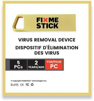 FixMeStick Gold Computer Virus Removal Stick for Windows PCs - Unlimited Use on Up to 5 Laptops or Desktops for 2 Years - Works with Your Antivirus
