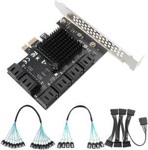 PCIe x1 to 12-Port SATA3.0 Expansion Card,6Gbps SATA Adapter for SSD/HDD, Plug and Play with 12 Status LEDs, Compatible with Windows/Linux/Ubuntu/ESXi/Synology NAS (with SATA Bundle Cables)