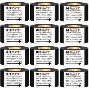 DEFMATE 12 Rolls 30mm x 100m Black Hot Stamping Foil Thermal Transfer Ribbon Resin for Coder Printer Machine, Black Color Ribbon for Coding Machine