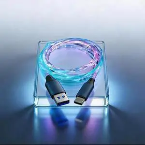 10FT RGB Glowing USB C Cable - 66W Super Fast Charging, 480Mbps High Speed Transfer, Type C to USB A Extension Cord, Perfect for i-Phone 16 17 Pro Max/Plus, Samsng Galaxy S24 S23,LG More Android Phone