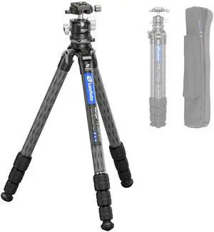 LEOFOTO Carbon Fiber Tripod with Leveling Base for Camera, 360 Rotating Ball Head, 1/4" QR Plate for Sport Camera/Phone/Projector, Compact Tripod with Panoramic Base, A Bubble Level, Max Load 22LB