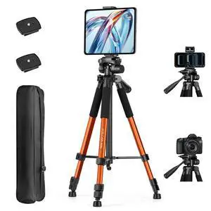 JOILCAN 67" Phone iPad Tripod, Professional Camera Tripod Stand for Tablet iPhone with 2-in-1 Holder & Carry Bag, Extendable Travel Tripod for Cellphone Camera Video Recording Live Vlog (Orange)