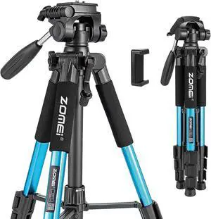 Portable 55-inch Camera Tripod Q111 Lightweight Phone Stand with Phone Holder and Quick Release Plate for DSLR Cameras,Cell Phones,Projector,Webcam,Spotting Scopes Canon EOS Nikon Sony Samsung(Blue)