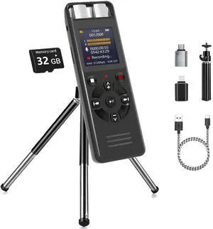 128GB Digital Voice Activated Recorder for Lectures&Meetings,Phone Connected via OTG,9280 Hours Audio Recorder with Tripod Stand,Recording Device with Playback,Password,Variable Speed (32GB)