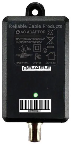 Reliable Cable Power Supply, High Efficiency OEM Replacement Wall Mount Coax Adapter for CATV Drop Amplifiers 12V 500mA (0.5A) with F-Type Connection, DoE Level VI Rated
