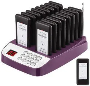 Restaurant Pager System, 16 Wireless Pagers for Restaurants, Set with Vibration, Flashing and Buzzer, Restaurant Buzzers for Church, Hospital, Bar, Hotel,Truck (Purple)