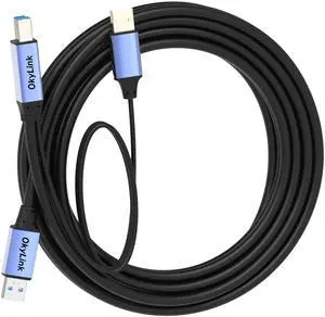 OkyLink 15ft(5M) Active USB 3.0/3.2 Gen 1 Printer Cable A Male to B Male with Optional Power Cable 5Gbps for Long Distance Printer, Scanner